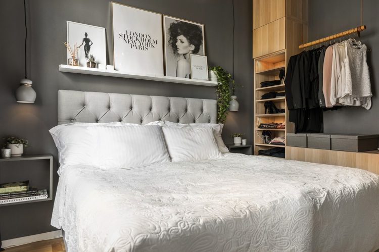 Trong phòng ngủ có khá nhiều tủ, kệ phục vụ cho nhu cầu lưu trữ đồ của cô chủ