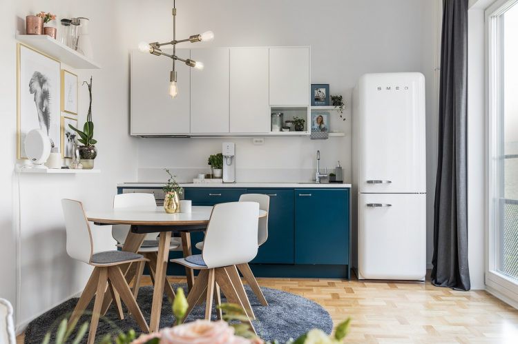 Dù có diện tích khá nhỏ nhưng căn hộ nhỏ xinh này vẫn có đầy đủ các khu vực chức năng gồm: phòng bếp, phòng ngủ riêng tư, khu vực tiếp khách và nhà vệ sinh.